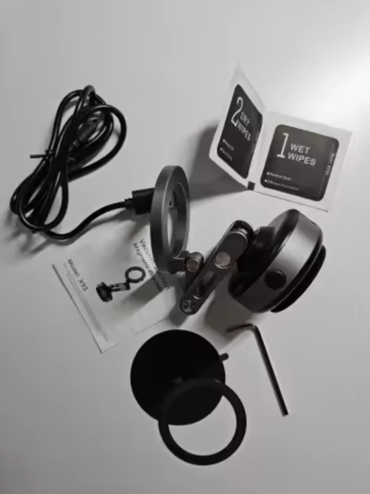 je vybaven vakuovým motorem, který zajišťuje maximální stabilitu bez nutnosti ručního přitlačování. Stačí přiložit přísavku k povrchu a ta se k němu automaticky přisaje, takže máte jistotu, že držák zůstane na svém místě!